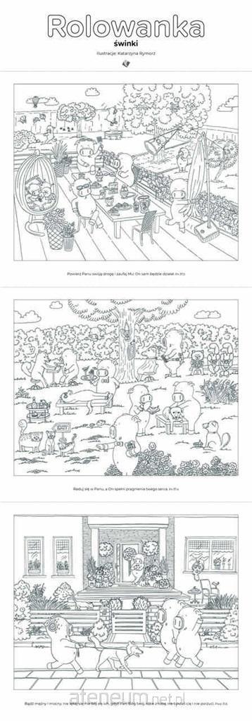 Rolowanka, czyli długa kolorowanka inspirowana życiem codziennym autorki, którą jest Katarzyna Rymorz. Tym razem rysowała życie świnek.