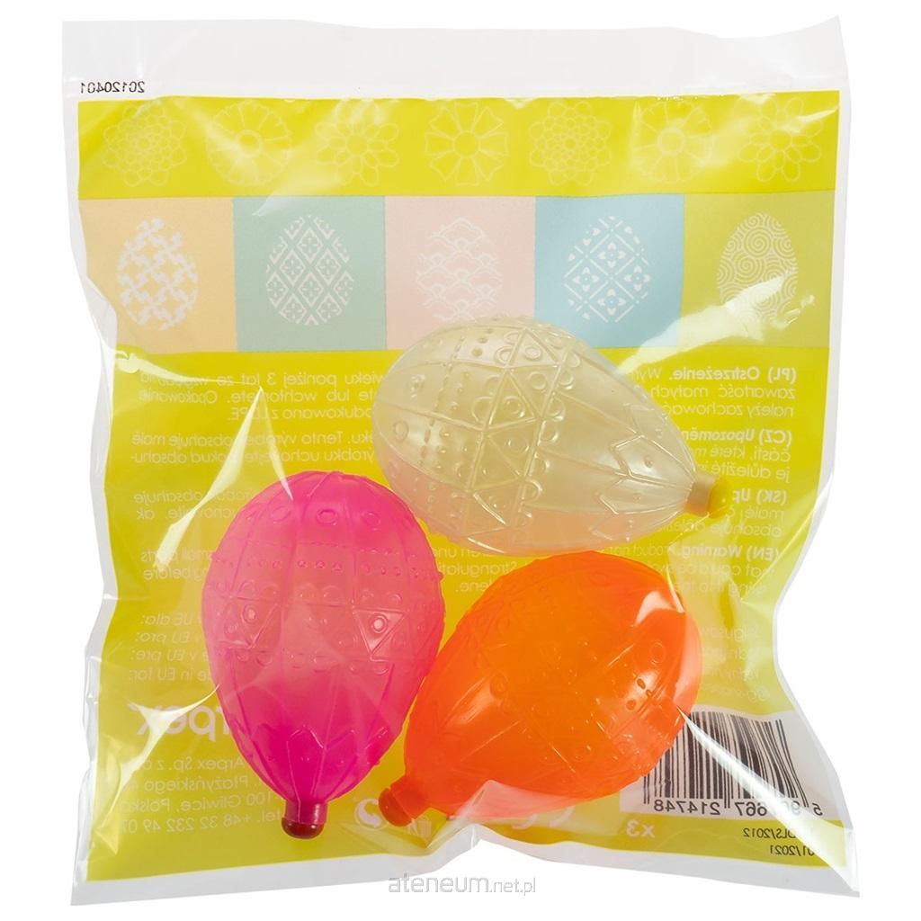 Poręczne jajka wielkości 4 cm na wodę. Idealne na śmigus-dyngus. Pakowane po 3 sztuki.