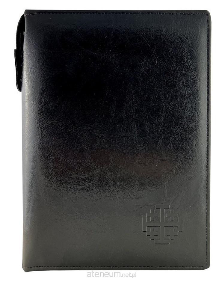 Polecamy futerał na Biblię Jerozolimską w dużym formacie 18x25. Zamykany na zamek, czarny, ekoskóra, tłoczenie w dolnym prawym rogu.