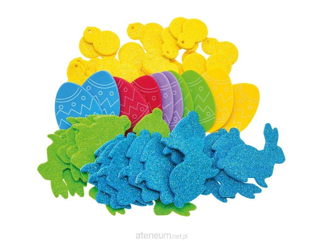 Naklejki z pianki z brokatem nazwa: jajka, kurczaczki, zajączki ilość: 56 szt