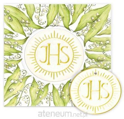 Składany z trzech stron kwadratowy karnet o wymiarach 15 x 15 cm z wyciętym elementem na froncie. Złocony i tłoczony, teksy życzeń w środku. Wydrukowany na wysokiej jakości papierze. W zestawie koperta.