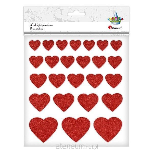 Naklejki piankowe - brokatowe serca: 20 x 18, 24 x 22, 29 x 25, 37 x 32, 49 x 44 mm, czerwone, 25 szt.