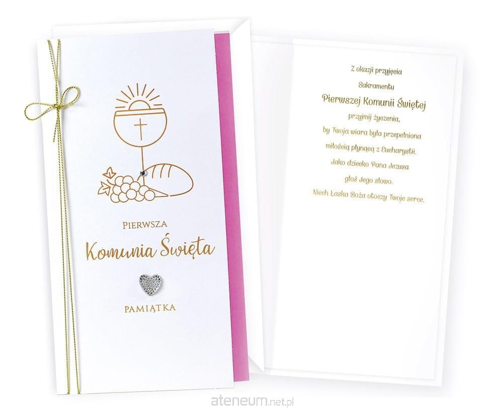 Każda kartka w kolekcji Passion Moments to małe arcydzieło - wyjątkowe i niepowtarzalne, piękne wizualnie. Kartki PM są bardzo bogato zdobione, a jednocześnie skromne i stylowe, cały efekt tkwi w detalach i doskonałym wykonaniu. W zależności od wzoru, na kartkach znajdują się dekoracje ze złotej, srebrnej, perłowej lub holograficznej folii, a także doklejki biżuteryjne, kokardki, brokat, laserowe wycięcia, wstążeczki i inne dodatki. Wnętrze karnetu to zawsze atrakcyjna grafika i tekst życzeń. Kartki mają w komplecie dopasowaną kopertę. Cechy szczególne: zdobienie: przynajmniej dwie folie (metaliczne/perłowe/holograficzne), brokat, elementy doklejane, wycięcia laserowe, wstążeczki - w zależności od wzoru, wnętrze: z delikatną grafiką, wyjątkowe życzenia w środku, w komplecie: dopasowana kolorystycznie koperta, okazja: komunia Wymiary karnetu po złożeniu: 11,4 x 21,5 cm.