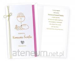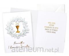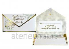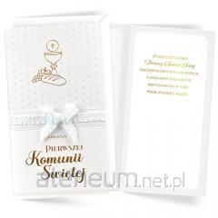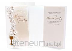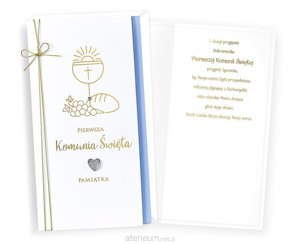 Każda kartka w kolekcji Passion Moments to małe arcydzieło - wyjątkowe i niepowtarzalne, piękne wizualnie. Kartki PM są bardzo bogato zdobione, a jednocześnie skromne i stylowe, cały efekt tkwi w detalach i doskonałym wykonaniu. W zależności od wzoru, na kartkach znajdują się dekoracje ze złotej, srebrnej, perłowej lub holograficznej folii, a także doklejki biżuteryjne, kokardki, brokat, laserowe wycięcia, wstążeczki i inne dodatki. Wnętrze karnetu to zawsze atrakcyjna grafika i tekst życzeń. Kartki mają w komplecie dopasowaną kopertę. Cechy szczególne: zdobienie: przynajmniej dwie folie (metaliczne/perłowe/holograficzne), brokat, elementy doklejane, wycięcia laserowe, wstążeczki - w zależności od wzoru, wnętrze: z delikatną grafiką, wyjątkowe życzenia w środku, w komplecie: dopasowana kolorystycznie koperta, okazja: komunia Wymiary karnetu po złożeniu: 11,4 x 21,5 cm.
