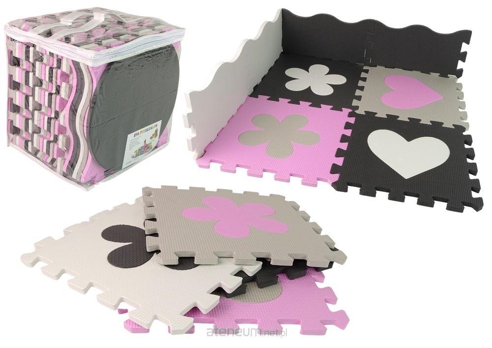 Mata Edukacyjna Piankowa EVA Puzzle Dla Niemowląt 25 szt Mata piankowa w postaci puzzli idealnie sprawdzi się jako mata dla niemowlaka lub dywan. Zapewni Twojemu dziecku komfort i bezpieczeństwo podczas zabawy oraz sprawdzi się także w nauce raczkowania. Przyjemna w dotyku i miękka układanka złożona z 25 elementów, w skład których wchodzą puzzle oraz obrzeża zabezpieczające. Elementy w łatwy sposób można ze sobą połączyć, tworząc dla malucha wygodne podłoże w formie dywanu, kojca, bądź wykorzystać do zabawy. Dla starszych dzieci będzie to wyzywanie. Maluch może tworzyć różne figury takie jak kwadrat lub trójkąt, rozwijając przy tym zdolność logicznego myślenia, wyobraźnie i kreatywność. Puzzle mają wyjmowane środkowe kształty serduszko, kwiatuszek. Może stanowić też element w formie zabawy w dopasowywanie kształtów. Każdy element jest wykonany z miękkiej pianki EVA i ma 1 cm grubości, dlatego doskonale izoluje od podłogi i amortyzuje upadki, sprawdzi się w trakcie nauki chodzenia. Łatwa w czyszczeniu, wystarczy przetrzeć mokrą ściereczką. Puzzle łatwo złożysz i przechowasz w dowolnym miejscu, dzięki opakowaniu w formie pokrowca. Wymiary jednego puzzla: 30 cm x 30 cm x 1 cm Wymiary opakowania: 31 cm x 31 cm x 28 cm Produkt został wykonany z nietoksycznego materiału i posiada certyfikat CE.