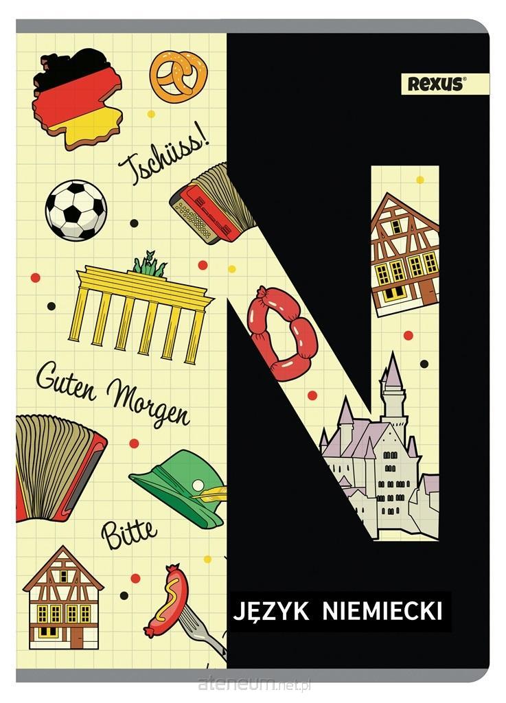 Zeszyt A5, posiada 60 kartek o gramaturze 70 g/m2 w kratkę. Charakteryzuje się estetycznym wykończeniem i modną okładką tematyczną Język Niemiecki