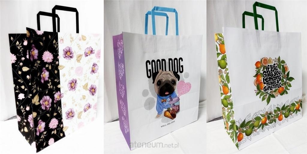 Torebka biała KRAFT 250x380x150, mix wzorów, wzór wysyłany losowo.