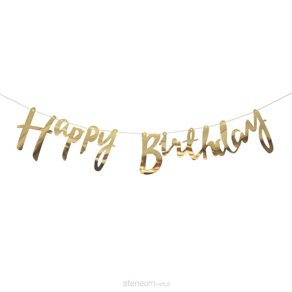 Girlanda papierowa Happy Birthday z linii Celebrate! Nieodłączny element każdej imprezy urodzinowej Zestaw do samodzielnego złożenia zawiera literki oraz sznurek Długość: 150 cm Kolor: złoty