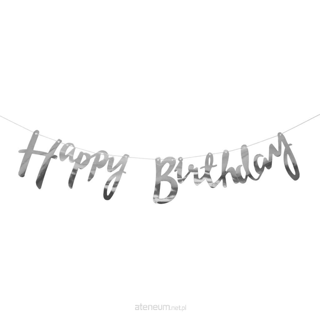 Girlanda papierowa Happy Birthday z linii Celebrate! Nieodłączny element każdej imprezy urodzinowej Zestaw do samodzielnego złożenia zawiera literki oraz sznurek Długość: 150 cm Kolor: srebrny