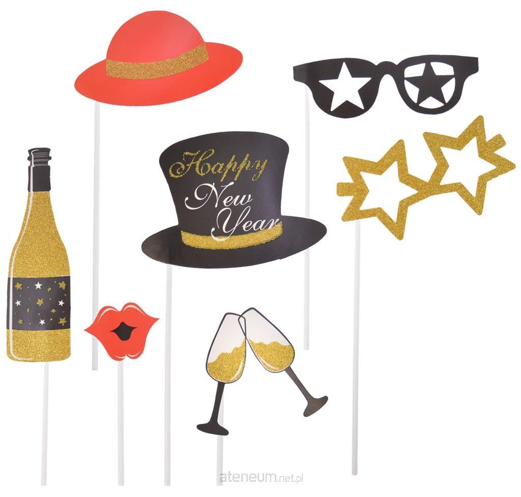 Zestaw akcesoriów do fotobudki. Wzory do urozmaicenia wspólnych zdjęć lub selfie. Elementy do zamocowania na patyczkach. Opakowanie zawiera: 10 wzorów do samodzielnego złożenia.