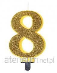 Świeczka cyferka brokatowa na podstawce. Wysokość świeczki 7,5 cm.