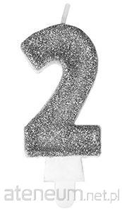 Świeczka cyferka 9 - Diament metalik srebrny 7,6cm