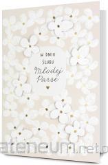 Karnet z kieszonką na pieniędze w formacie A5, składany z trzech. Złocony i tłoczony, teksy życzeń w środku. Wydrukowany na wysokiej jakości papierze. W zestawie koperta.