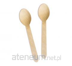 Sztućce drewniane z nadrukiem w kolorze jasnoniebieskim, wysokość ok. 16 cm, zestaw zawiera 6 łyżek, 6 noży i 6 widelców.(1 op. / 18 szt.)