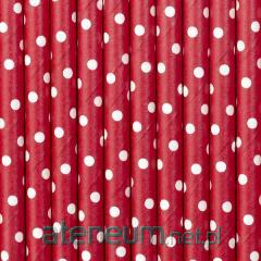Słomki papierowe w kolorze czerwonym z białymi ukośnymi paskami, długość około 19,5 centymetra.(1 op. / 10 szt.)