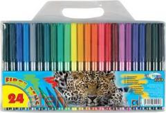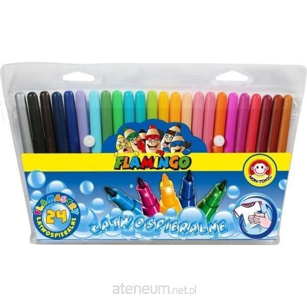 Zestaw 24 różnokolorowych łatwospieralnych flamastrów. Specjalny tusz sprawia, że flamastry można usunąć zarówno z ciała, jak i z ubrań oraz z innych powierzchni, za pomocą mydła i ciepłej wody. Posiadają bezpieczną, wentylowaną skuwkę. Produkt nietoksyczny, idealny dla każdego dziecka powyżej 3 roku życia. Długość flamastrów: 14 cm. Średnica flamastrów: 9 mm.