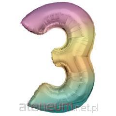 Balon foliowy cyfra 3 tęczowa pastel 58x86cm