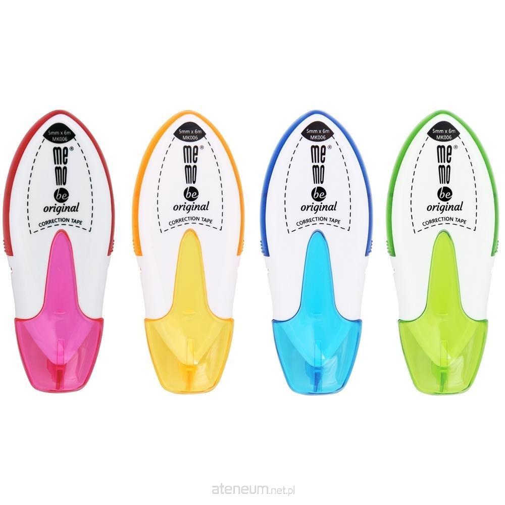 Korektor w taśmie MemoBe. W plastikowej białej obudowie o ergonomicznym kształcie. Posiada zatyczkę, zapobiegającą wysychaniu taśmy korekcyjnej i uszkodzeniu podajnika. Każda sztuka zapakowana w etui z zawieszką. Taśma o szerokości 5 mm i długości 6 m. Produkt dostępny w różnych wersjach kolorów zatyczki.