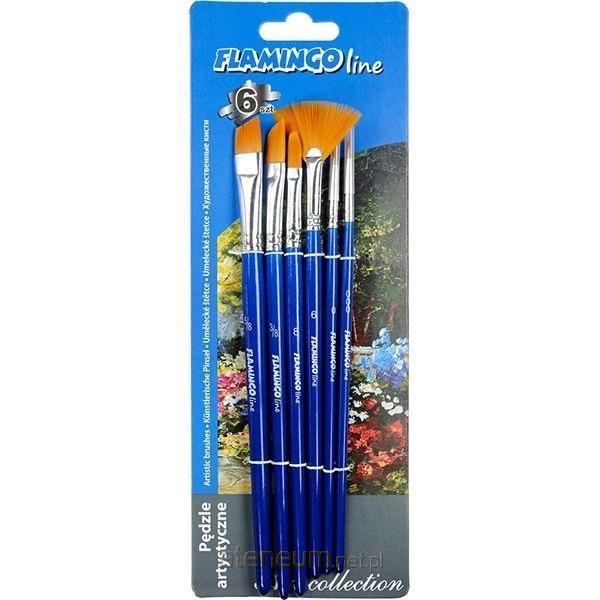 Zestaw pędzli artystycznych z włosiem syntetycznym. Idealnie nadają się do bardzo precyzyjnego malowania. Gwarantują niezwykłą precyzję, przydatną przy kreowaniu wszelkiego rodzaju niewielkich detali i wykończeń. Idealne do zastosowań szkolnych, domowych oraz dla artystów na każdym poziomie zaawansowania. Doskonale nadają się do farb olejnych, akrylowych, akwarelowych, gwaszy oraz farb do tkanin. Wytrzymałe drewniane uchwyty z oznaczeniem grubości pędzla. Różne końcówki i grubości włosia: okrągła NR 000 i 0, płaska wachlarzowa NR 6, płaska zaokrąglona NR 8, płaska ścięta NR 3/8 i 5/8. Pakowane w blister.