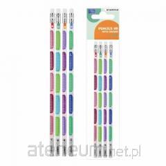 Wysokiej jakości drewniane ołówki z gumką. Twardość HB. W okrągłej, metalizowanej obudowie z nadrukiem kółek. Do pisania i rysunku technicznego, artystycznego oraz graficznego. Pakowane w blister mix 5 kolorów.