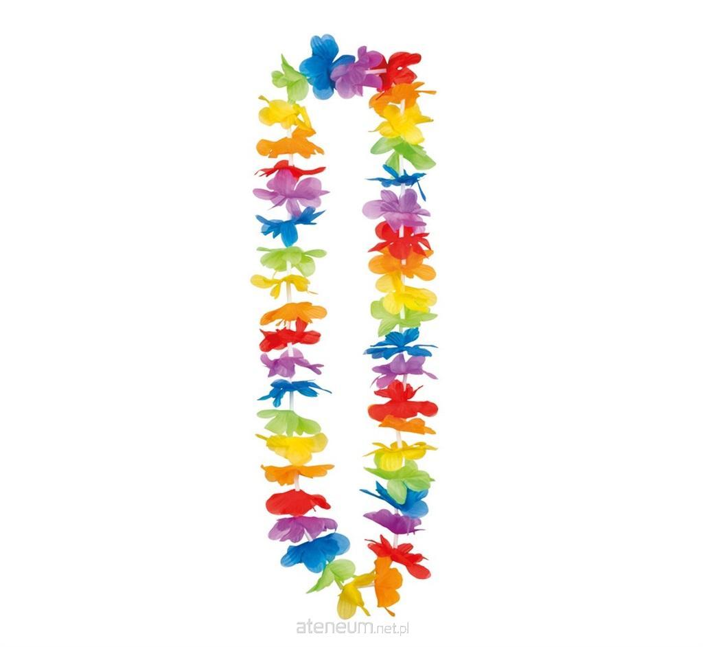 NASZYJNIK HAWAJSKI TĘCZOWY Długość: 49 cm Materiał: 50% poliester, 50% pvc. To idealny dodatek do imprezy o tematyce hawajskiej!