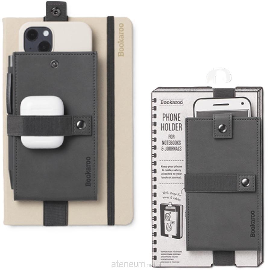 Uchwyt na telefon komórkowy (smartfona), który zakłada się na notatnik lub książkę. Jest bardzo praktyczny i stylowy. Pasuje do niego większość telefonów. Wewnątrz posiada welurową wyściółkę, dzięki której ekran nie jest narażony na zarysowania. U góry ma zapięcie na klips, przez co smartfon z niego nie wypadnie.