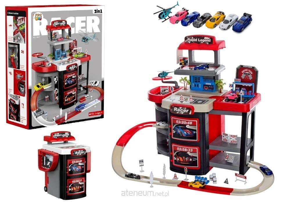 Rozbudowany garaż o tor wyścigowy to masa frajdy dla każdego dziecka. Aż 6 sportowych aut znajdujących się w zestawie może stanąć do wyścigu, którego trasa przebiega nawet przez wnętrze garażu, a zwycięzca stanie na podium na samym szczycie garażu. Nad bezpieczeństwem uczestników czuwa helikopter, który w każdej chwili może wylądować na specjalnym lądowisku.