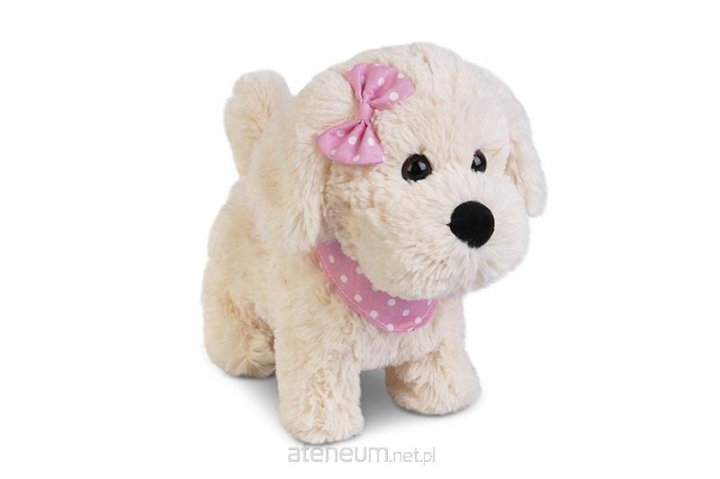 Piesek udekorowany różową chustką oraz różową kokardką w białe kropki. Ma wielkość 21 cm. Piesek posiada różne funkcje: chodzi, szczeka, merda ogonkiem. Do pieska dołączono różową smycz. Na opakowaniu znajduje się instrukcja obsługi smyczy. Zabawka wymaga 3 baterii AA 1,5V (nie dołączono do zestawu).