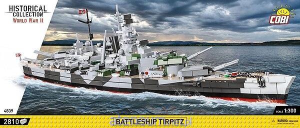 Tirpitz to niemiecki pancernik z okresu II wojny światowej, zwodowany 1 kwietnia 1939. To bliźniaczy okręt pancernika "Bismarck" i największa jednostka Kriegsmarine w latach 1941-1944. Swoją gotowość bojową osiągnął we wrześniu 1941. Został zatopiony 12 listopada 1944 w pobliżu norweskiego Troms przez brytyjskie lotnictwo. Model okrętu stworzony przez firmę COBI został wyprodukowany w skali 1:300. Posiada blisko 2810 elementów i ma aż 87 cm długości. Dzięki zastosowaniu najnowszych dostępnych elementów oraz zaawansowanych technik konstrukcyjnych model możliwie wiernie oddaje proporcje historycznego okrętu i zachowuje jego wszystkie istotne elementy, w tym także oryginalny, bardzo charakterystyczny kamuflaż. Posiada liczne ruchome części takie jak: śruby napędowe, stery, obracane wieże i lufy dział, które można podnosić i opuszczać. Zestaw zawiera także bardzo stabilną i estetyczną, czarną podstawkę ekspozycyjną z tabliczką, na której nadrukowana jest nazwa okrętu. Ponieważ jest to wielki i dość złożony model, to polecamy go głównie kolekcjonerom-weteranom i starszym, doświadczonym fanom klocków. Nie wymaga sklejania ani malowania, ponieważ cała jego bryła i wszystkie elementy składają się z klocków konstrukcyjnych COBI. 2810 wysokiej jakości elementów, wyprodukowane w UE przez firmę z ponad 20-letnią tradycją, spełniają normy bezpieczeństwa dotyczące produktów dla dzieci, w pełni kompatybilne z innymi markami klocków konstrukcyjnych, klocki z nadrukami nie odkształcają się i nie bledną w czasie zabawy czy pod wpływem temperatury, czytelna i intuicyjna instrukcja oparta na rysunkach i ikonach, estetyczna ekspozycyjna podstawka pod model, tabliczka z nazwą okrętu, skala modelu 1:300,