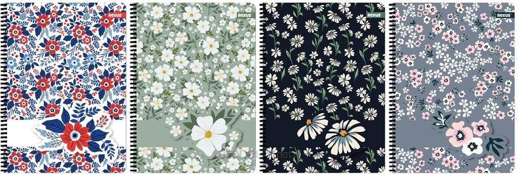 Kołozeszyt A4, posiada 80 kartek o gramaturze 70 g/m2 w kratkę. Charakteryzuje się estetycznym wykończeniem, modną grafiką Flower na okładce i czarną spiralą. Dostępne 4 wzory