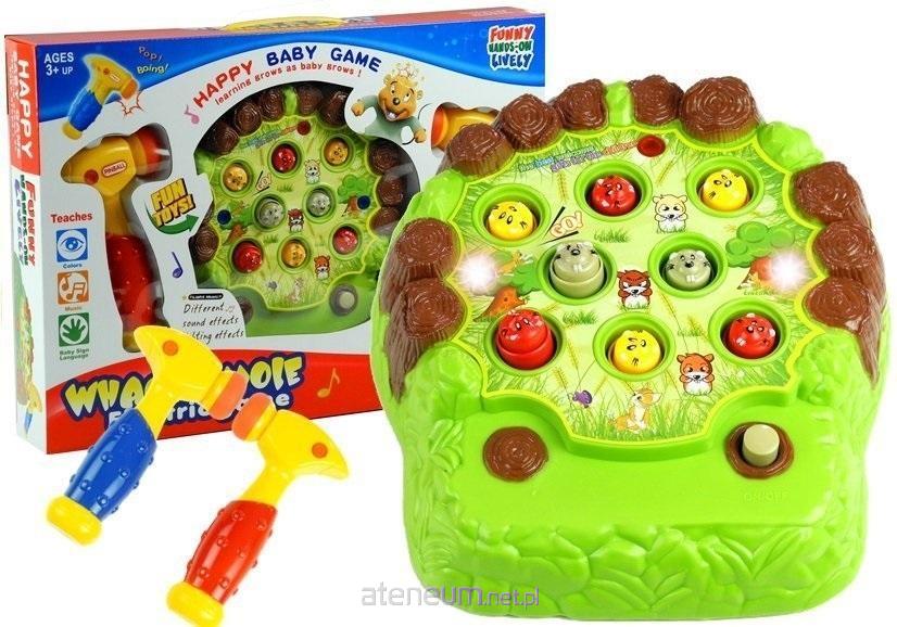 Gra Zręcznościowa Uderzanie Bobrów Młoteczkiem Gry i zabawy zręcznościowe mogą być świetną alternatywą dla klasycznych zabaw. Gwarantują przyjemnie spędzony czas, tym samym ucząc młodych graczy refleksu, koordynacji ruchowej, spostrzegawczości i innych przydatnych w życiu umiejętności. Ta popularna gra znana jako Whack a Mole polega na szybkim uderzaniu plastikowymi młoteczkami pojawiających się głów kolorowych bobrów. Zasady tej gry są bardzo proste, dzięki czemu nauczą się ich w mig nawet najmłodsi członkowie rodziny - jednak polecana jest dla dzieci od 3. roku życia. Wygrana w tej w zabawie zależy od indywidualnych predyspozycji graczy, ich zmysłu obserwacji i szybkości wykonywanych odruchów. Przedstawiona zabawa zręcznościowa składa się z zielono-brązowej plastikowej planszy wypełnionej wielokolorowymi głowami bobrów oraz dwóch młoteczków, dzięki czemu mogą używać jej równocześnie dwie osoby. Przedstawiony zestaw jest bardzo kolorowy, na co wskazują nadruki zwierząt i roślin na planszy, a także kolorowe akcesoria, co na pewno zainteresuje malucha. Spraw swojemu dziecku taką grę, a już nigdy więcej nie będzie się nudzić - w ten sposób z przyjemnością nauczy się nazw kolorów i pozna nowe dźwięki. Wymiary elementów zestawu: - plansza: 25,5 cm x 22,5 cm, - młoteczki: 18 cm x 10 cm. Wymiary opakowania: - 45,5 cm x 32 cm x 7,5 cm.