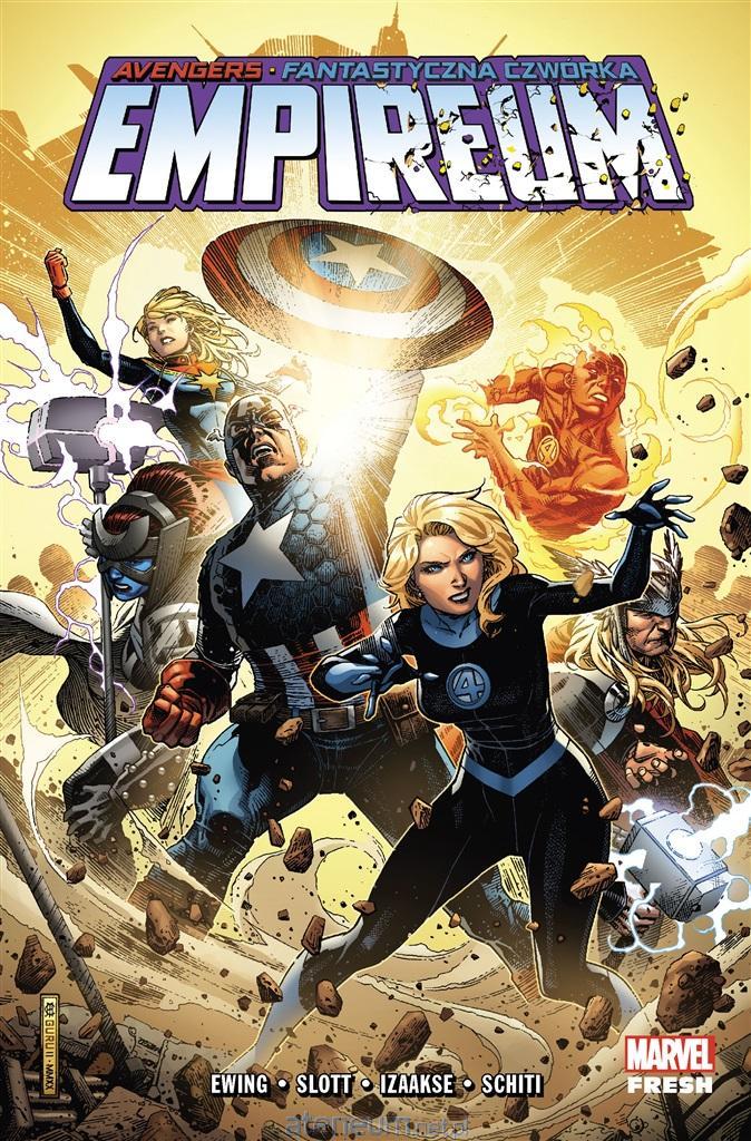 Zaciekła rywalizacja pomiędzy kosmicznymi imperiami Kree i Skrulli nieraz sprowadzała zagładę na całe planety i odmieniała losy uniwersum Marvela. Teraz byli wrogowie łączą siły pod berłem władcy, którego nikt się nie spodziewał. Nie są jednak w stanie zapobiec nowemu międzygalaktycznemu konfliktowi, którego centrum jest Ziemia! Czy superbohaterowie z Avengers i Fantastycznej Czwórki zdołają ocalić naszą planetę? Czy też będą musieli poświęcić swój dom, żeby uratować cały wszechświat? Scenariusz tego komiksu napisali wspólnie Al Ewing ("Nieśmiertelny Hulk", "Strażnicy Galaktyki") oraz Dan Slott ("Amazing Spider-Man", "Silver Surfer", "The Superior Spider-Man"). Za rysunki odpowiadają między innymi Valerio Schiti ("Strażnicy Galaktyki", "Tony Stark: Iron Man") i Sean Izaakse ("Avengers: Bez drogi do domu"). Album zawiera materiały opublikowane pierwotnie w zeszytach: "Incoming!", "Road to Empyre: The Kree/Skrull War", "Empyre" #0: "Avengers", "Empyre" #0: "Fantastic Four", "Empyre" #1-6, "Empyre Aftermath: Avengers", "Empyre Fallout: Fantastic Four".