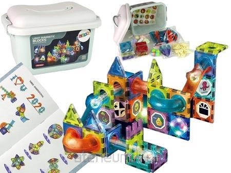Zjeżdżalnia Dla Kulek Podświetlany Tor Klocki Magnetyczne 75 Elementów Klocki magnetyczne to doskonała zabawka edukacyjna, rozwija kreatywność dziecka, uczy cierpliwości oraz skupienia. Będzie wyzwaniem dla małych konstruktorów. Radość i satysfakcja ze stworzenia własnych projektów buduje pewność siebie, rozwija zdolności manualne i precyzje. Różnokolorowe kształty i kolory stymulują zmysły Twojego dziecka. Zabawa inspiruje dziecko do twórczości i pomoże rozwijać je na wielu płaszczyznach. Klocki są super lekkie i trwałe, można z nich stworzyć tory, place zabaw, budowle, które ma pokonać świecąca kulka. Zbuduj tor, gdzie znajdują się rampy, pętle i przeszkody, które dziecko może dowolnie łączyć i układać. Tor dla kulek idealny dla małych i dużych. Jak rozpocząć zabawę? - zbuduj tor - puść kolorową, świecącą kulkę, - obserwuj jak mknie przez zbudowany tor Książeczka załączona do zestawu przedstawia przykładowe tory. Część elementów posiada wbudowane oświetlenie, które zapewni efektowny wygląd zabawki. Dziecko może bawić się samo, z przyjaciółmi lub rodzicami organizując wyścigi - czyja kuleczka pierwsza dotrze do mety? Obserwowanie sprawi mnóstwo radości. Elementy zestawu: - kuleczki świecące, elementy świecące - klocki magnetyczne - naklejki Wymiary opakowania: 30 cm x 20 cm x 18 cm Wszelkie elementy wchodzące w skład przedstawianej zabawki wykonane są z bezpiecznych dla dziecka, atestowanych materiałów. Zestaw ten posiada certyfikat CE, dlatego jest idealnym prezentem dla dzieci - zwłaszcza tych, które ukończyły 3 rok życia. Warto zwrócić na to uwagę, ponieważ w opakowaniu znajduje się wiele elementów o małym rozmiarze. Zawiera baterie 1,5 V LR1130 i LR41.