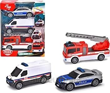 Zestaw pojazdów ratunkowych S.O.S. 3 sztuki w zestawie: policja, karetka, straż pożarna.