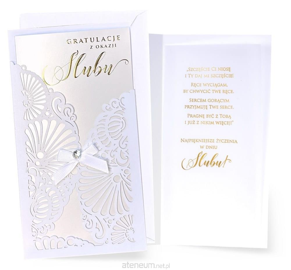 Każda kartka w kolekcji Passion Moments to małe arcydzieło - wyjątkowe i niepowtarzalne, piękne wizualnie. Kartki PM są bardzo bogato zdobione, a jednocześnie skromne i stylowe, cały efekt tkwi w detalach i doskonałym wykonaniu. W zależności od wzoru, na kartkach znajdują się dekoracje ze złotej, srebrnej, perłowej lub holograficznej folii, a także doklejki biżuteryjne, kokardki, brokat, laserowe wycięcia, wstążeczki i inne dodatki. Wnętrze karnetu to zawsze atrakcyjna grafika i tekst życzeń. Kartki mają w komplecie dopasowaną kopertę. Cechy szczególne: zdobienie: przynajmniej dwie folie (metaliczne/perłowe/holograficzne), brokat, elementy doklejane, wycięcia laserowe, wstążeczki - w zależności od wzoru, wnętrze: z delikatną grafiką, wyjątkowe życzenia w środku, w komplecie: dopasowana kolorystycznie koperta, okazja: Ślub Wymiary karnetu po złożeniu: 11,4 x 21,5 cm.