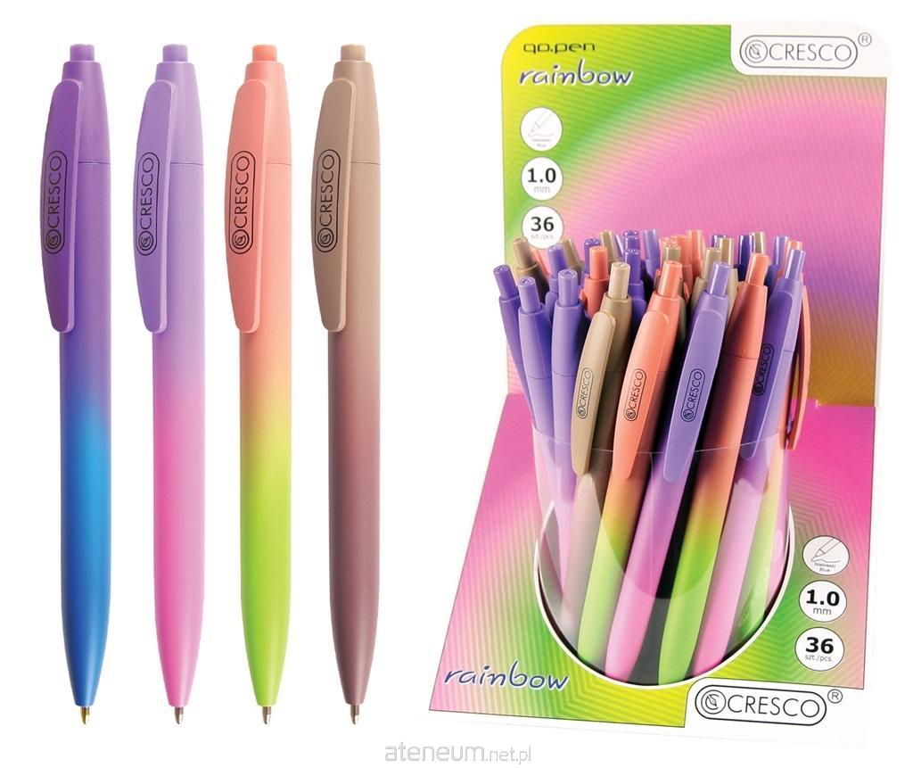 Plastikowy długopis z wymiennym wkładem niebieskim o grubości linii 1 mm. Mechanizm wysuwania wkładu pstrykany, ciekawa kolorystyka.