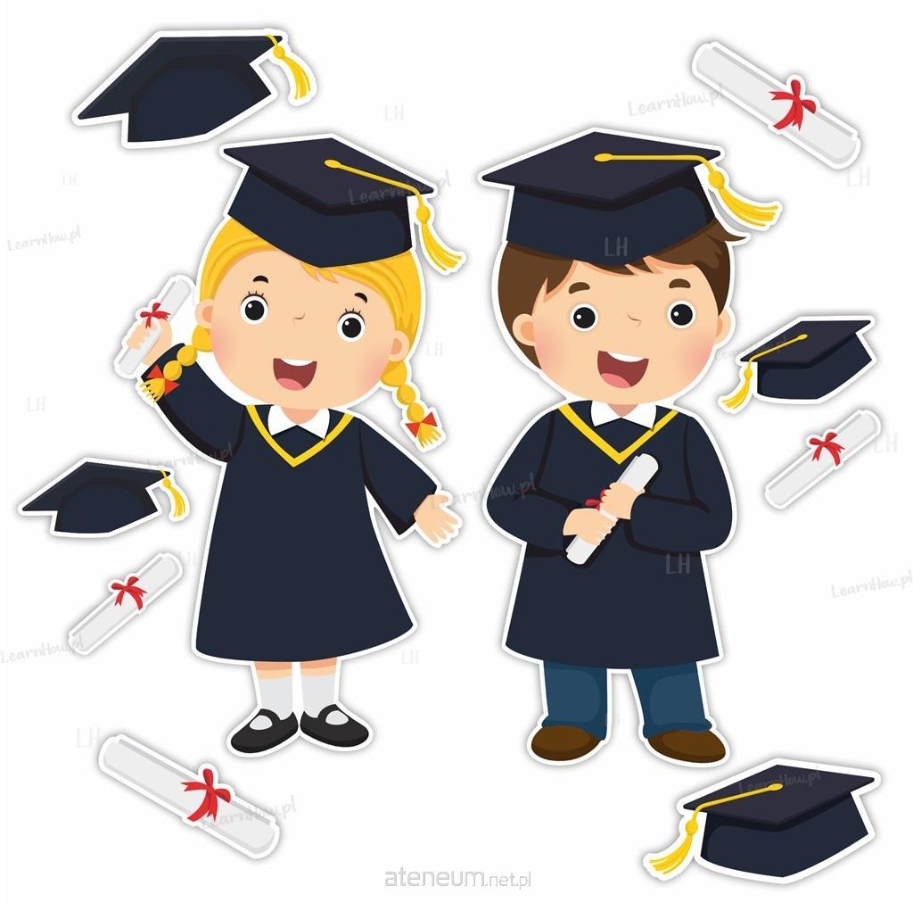 Zestaw składa się z 2x dużych dzieci, 4x birety, 4x "dyplomy" - idealne na uroczystość zakończenia roku w szkole lub przedszkolu.