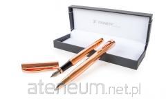 Model zestawu piśmiennego MASTER w atrakcyjnej kolorystyce ze złotymi wykończeniami. Kolekcja obejmuje pióro wieczne ze stalówką irydową oraz długopis. Pióro wieczne ze stalówką irydową zasilane standardowymi nabojami atramentowymi. Długopis posiada pstrykany system wysuwania wkładu wielkopojemnościowego typu Zenith. Komplet zapakowany w eleganckie etui skóropodobne 38.