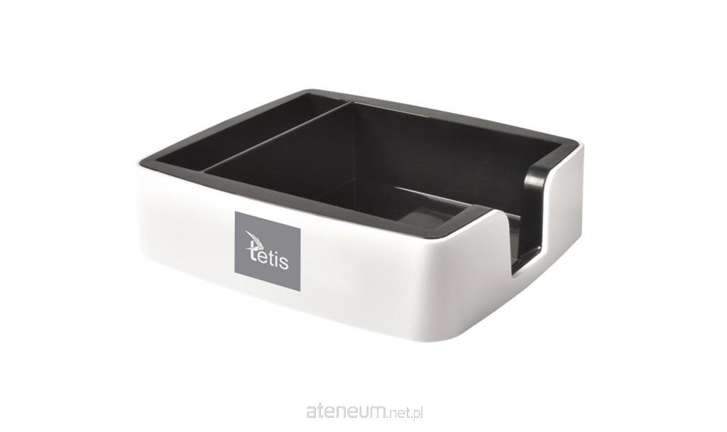 Wykonany z tworzywa sztucznego organizer. Antypoślizgowa podstawa. Pojemność wizytówek: 50 sztuk. Pojemność karteczek: 200 sztuk. Maksymalny rozmiar karteczek: 90x90 mm