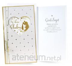 Kartka z serii Pop-Up to idealny pomysł na oryginalną i nietypową pamiątkę dla Młodej Pary. Kartki wyróżniają się przestrzennym elementem wewnątrz, który uwypukla się wraz z jej otwarciem. W środku kartki znajdują się krótkie starannie dopasowane życzenia z miejscem na własną dedykację. Eleganckiego akcentu każdej kartce nadaje dołączona koperta mieniąca się perłowym blaskiem. Cechy szczególne: wielkość: 11.7 x 16.6 cm po złożeniu koperta: biała perłowa zdobienia: połyskująca folia perlista, złota folia, doklejany papierowy element okazja: Ślub