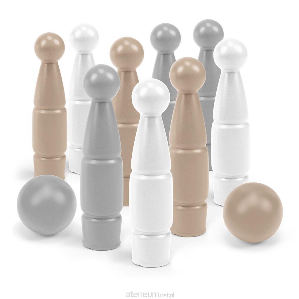 Zestaw do gry w kręgle w kolorach jasnego beżu, mlecznej szarości oraz bieli to fantastyczny sposób na wspólną zabawę. W zestawie znajduje się 9 różnokolorowych kręgli i 2 piłeczki. Całość jest starannie wykonana z bezpiecznych dla dzieci i trwałych materiałów. Gra w kręgle z serii Toys in Trends od Wader pobudzi wyobraźnię najmłodszych, rozwinie ich umiejętności motoryczne i manualne, precyzję ruchów, koordynację wzrokowo-ruchową i równowagę. Zabawa ma również pozytywny wpływ na myślenie przestrzenne i rozwija umiejętność oceny odległości, uczy również dyscypliny oraz koncentracji.