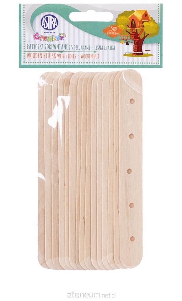 Patyczki z naturalnego drewna z 5 dziurkami Creativo 15 sztuk.