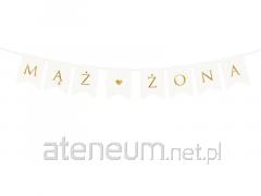 Baner w kolorze białym ze złotym napisem Witamy, do samodzielnego złożenia, zestaw zawiera literki i ok. 2,5 m białej tasiemki, wymiary po złożeniu: wysokość ok. 15 cm, długość ok. 80 cm.