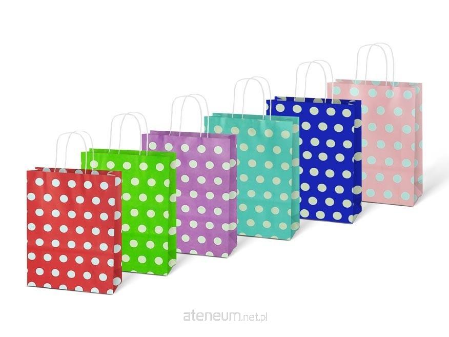 Torebka na prezent kraft 210x270x110 kropki mix