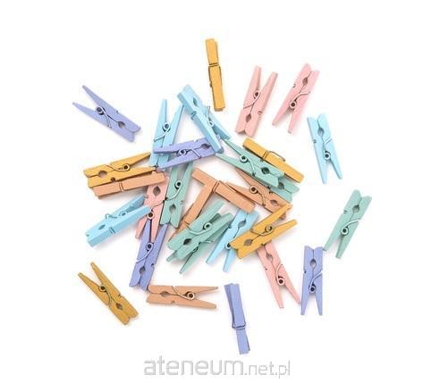 Dekoracyjne, małe klamerki w sześciu pastelowo-tęczowych kolorach.