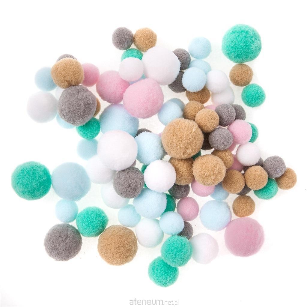 Puszyste, miękkie i miłe w dotyku pompony w różnych rozmiarach i delikatnych, pastelowych odcieniach mięty, pudrowego różu, beżu i bieli. Doskonałe do kreatywnych projektów dla dzieci i dorosłych.