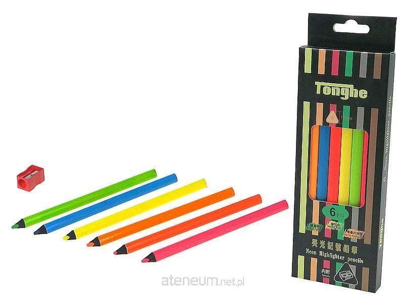 Kredki ołówkowe trójkątne czarne drewno neon 6szt
