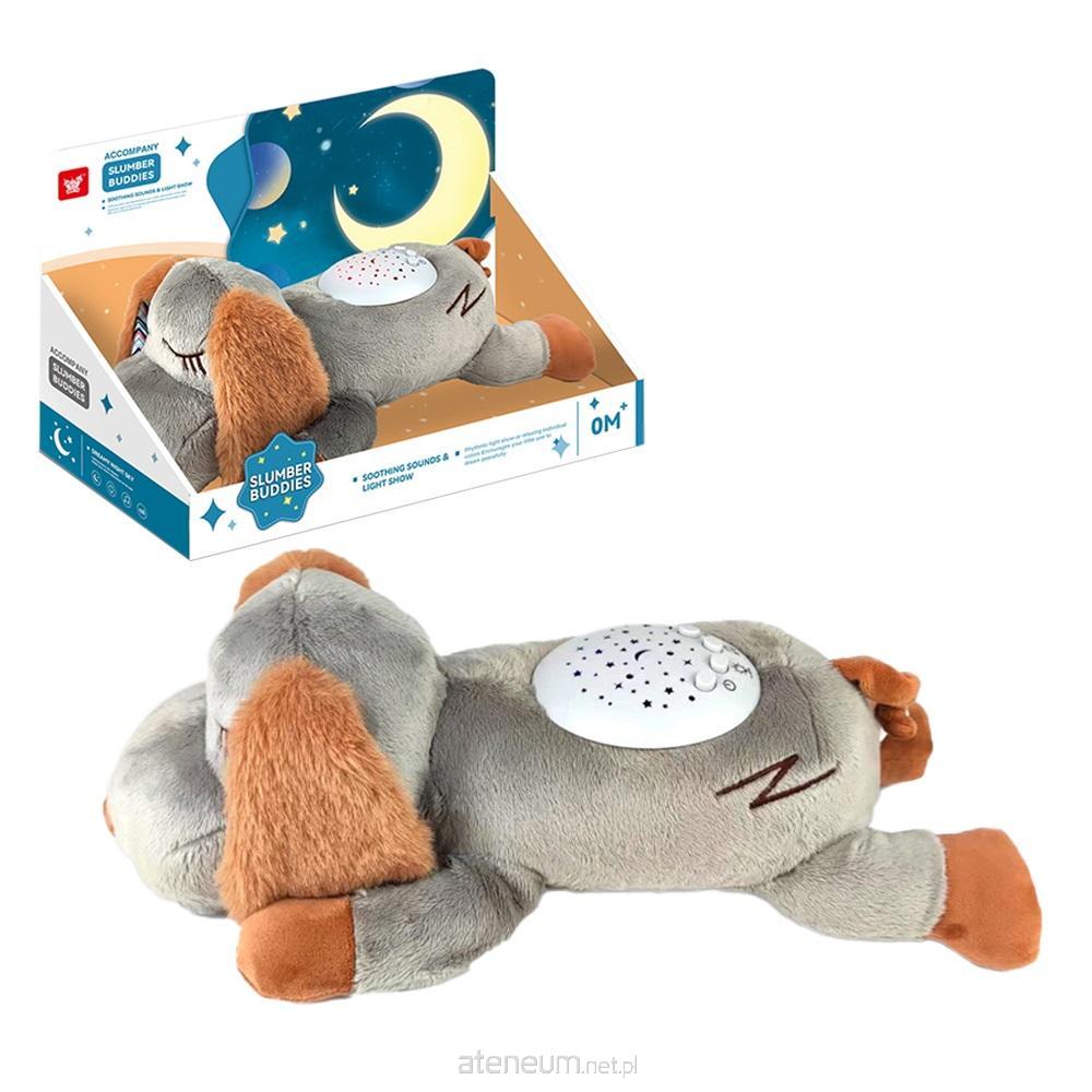Projektor muzyczny - piesek. Delikatne dźwięki muzyki, które można zmienić na szum fal. Kolorowy projektor, który wyświetla gwiazdki na ścianie lub suficie. Wymagane baterie - 2xAA (niedołączone). Długość pieska - 37 cm.