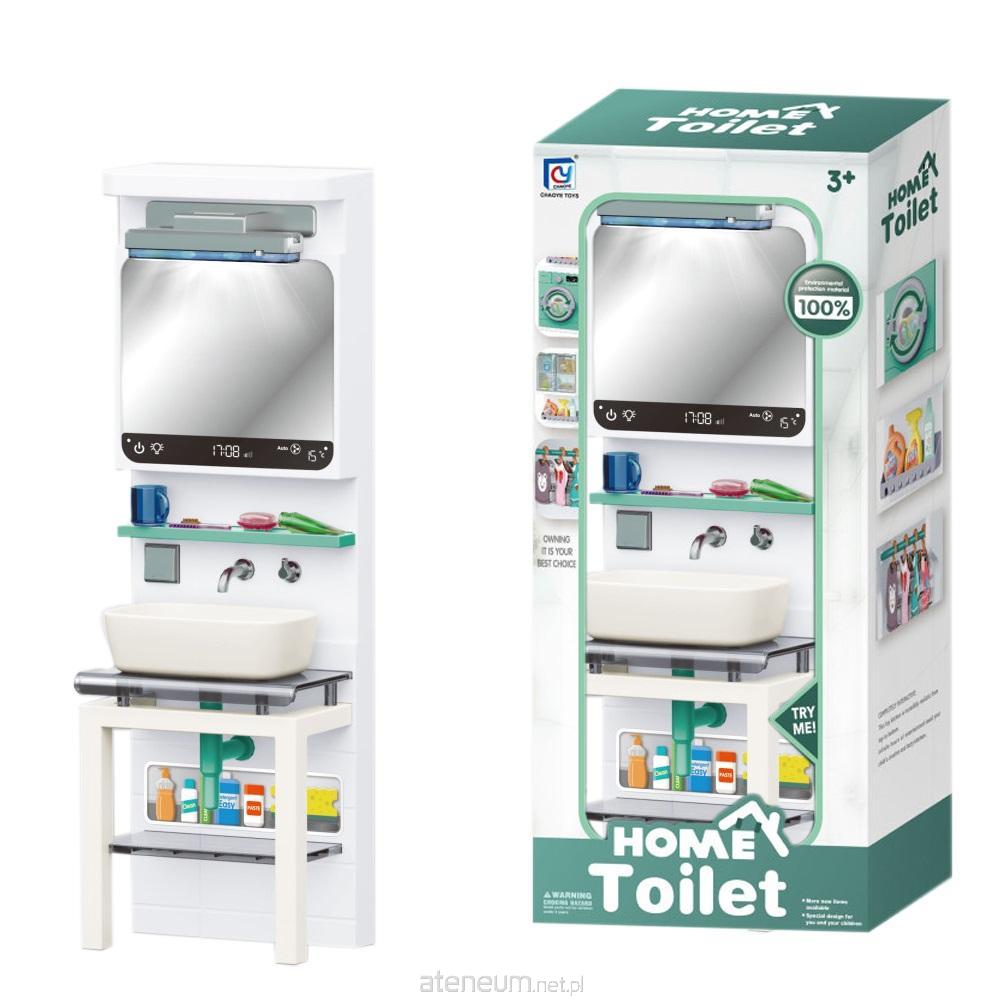 Zestaw łazienkowy z umywalką, lustrem i drobnymi akcesoriami. Światło nad lustrem. Wymagana bateria - 1xAAA (niedołączona).