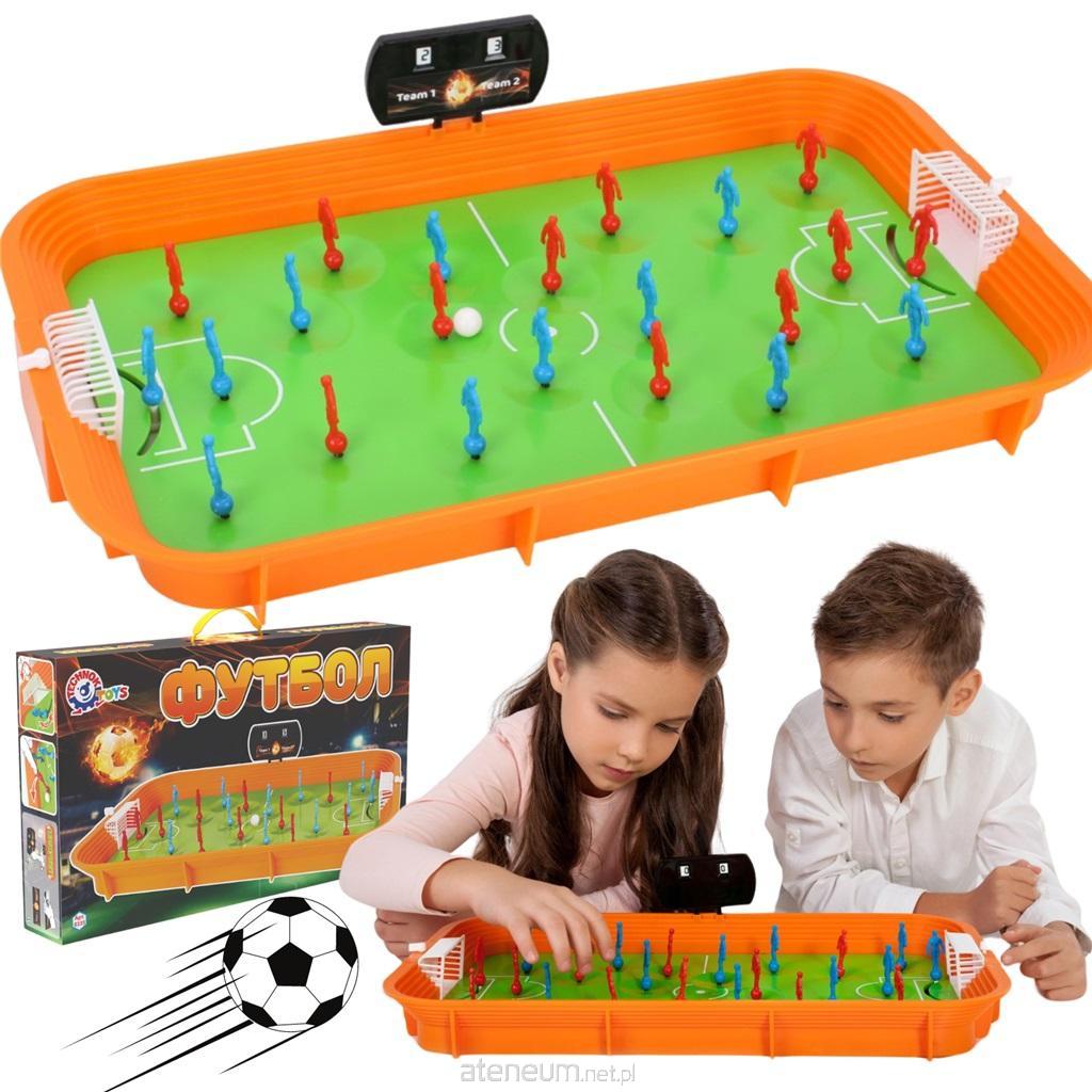 Klasyczna gra w piłkarzyki. Boisko zostało wykonane z zielonego tworzywa. Posiada pomarańczowe obramowanie imitujące trybuny. Piłkarzyki osadzone na sprężynkach zostały podzielone na dwie drużyny (czerwoni i niebiescy). Każda z drużyn posiada bramkarza, którym możemy poruszać za pomocą specjalnego uchwytu. Do zestawu została dołączona piłeczka i tablica z wynikiem. Wymiary opakowania: 53x8x31cm Wiek: 5+